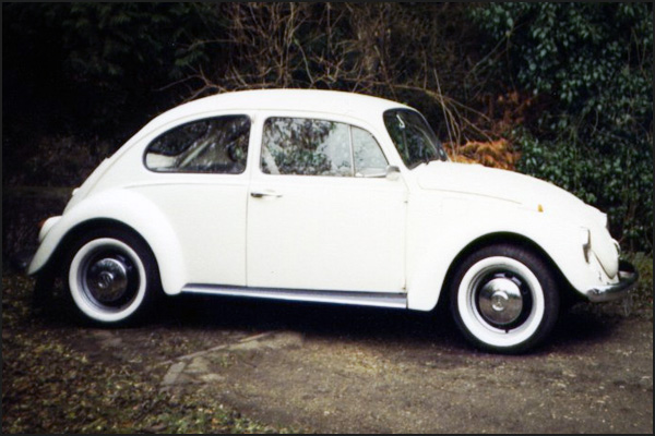 1968 1200cc Pastel White Beetle - standard, 6 volt, parking light, perfect white interior, was my daily driver.