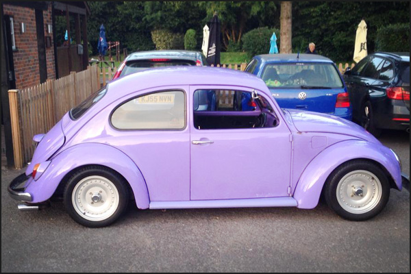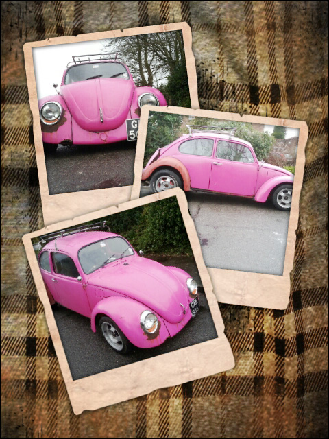 The Pink Panza. 1971 1300cc bug with a 1500 gearbox and a 1600 carb!! Slammed front end, raised rear :) one piece deck lid and rear valence, 2" wider rear wings slot mag wheels. Long term goal, big engine and light weight fibre glass panels etc. street legal drag car. Short term goals keep it on the road ;)